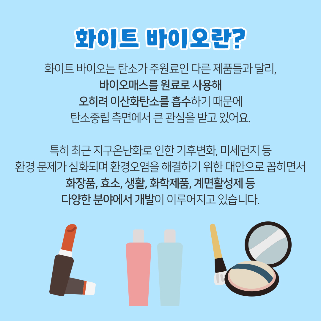 화이트 바이오 페이지 정보 작성자 관리자 댓글 댓글 0건 조회Hit 696회 작성일Date 23-06-02 10:18 본문 본 저작물은 "공공누리" 제4유형:출처표시+상업적 이용금지+변경금지 조건에 따라 이용 할 수 있습니다.출처: 국가환경교육센터 목록 이전글음폐수를 전기로 만드는 바이오가스 시설! 23.06.02 다음글탄소중립을 위한 기업의 아이디어! 23.06.02