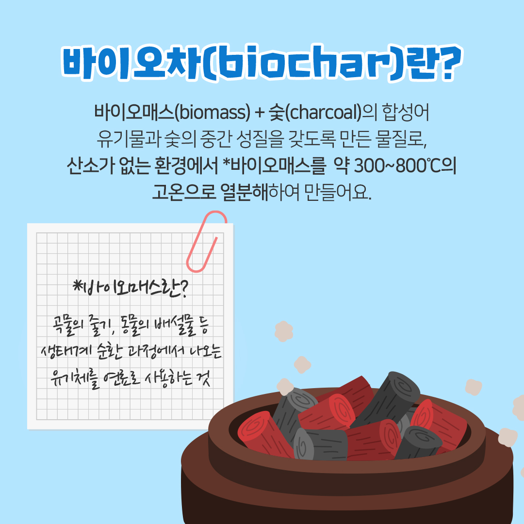 바이오차 페이지 정보 작성자 관리자 댓글 댓글 0건 조회Hit 838회 작성일Date 23-05-26 11:35 본문 본 저작물은 "공공누리" 제4유형:출처표시+상업적 이용금지+변경금지 조건에 따라 이용 할 수 있습니다.출처: 국가환경교육센터 목록 이전글그린오피스 만들기 23.05.26 다음글탄소배출 증가로 바다가 산성화된다? 23.05.26